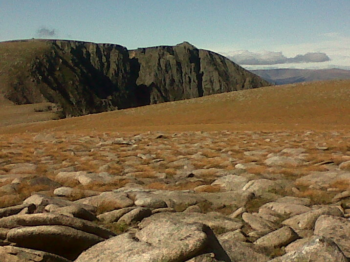 Half the population of Aberdeenshire were on the hill today, or at least in the immediate environs. Or so it seemed. But it was after all a Saturday, and a beautiful one at that. Fortunately we were ahead of most of them by a good distance, with only the wind for company, as we followed the rim of the great NE corrie most of the way to the trig point perched on the granite boulders of Cac Carn Beag. An Aberdeen lad offered us a dram from his hip flask (declined!) before he went off to find a quiet spot to read his book.